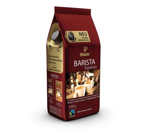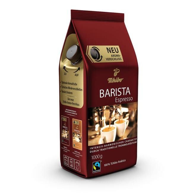 Tchibo Barista espresso sa vyrába z kávových plodov, ktoré pochádzajú zo zodpovednej poľnohospodárskej produkcie a sú zošľachťované pomalým pražením v bubnovej pražičke. Má jemný základ s nežnými tónmi horkej čokolády a orieškovým akcentom. Najnovšie je so špeciálnym uzáverom na zachovanie čerstvej arómy, ideálne dávkovanie a jednoduché opätovné uzavretie obalu.
