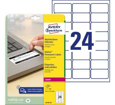 Etikety odolné na špeciálne použitie Avery `okamžite viditeľná manipulácia` 63,5x33,9mm biele