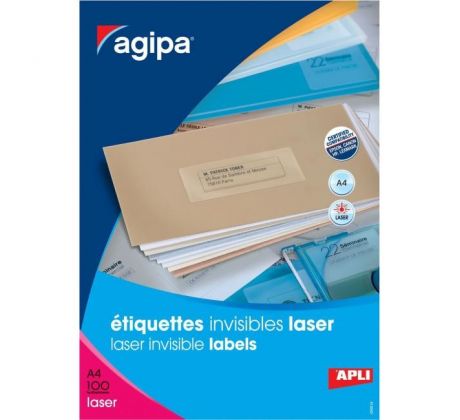 Etikety polyesterové priehľadné 70x37mm Agipa A4 laser 100 hárkov