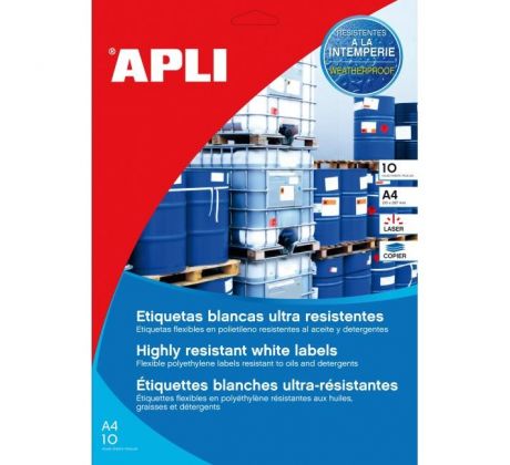 Etikety polyetylénové vysoko odolné 210x297 APLI 10 hárkov biele
