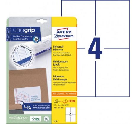 Etikety univerzálne 105x148mm Avery A4 25+5 hárkov