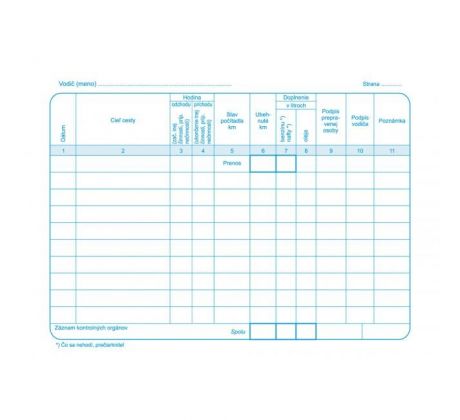Záznam o prevádzke vozidla osobnej dopravy, A5, blok, 100 listov