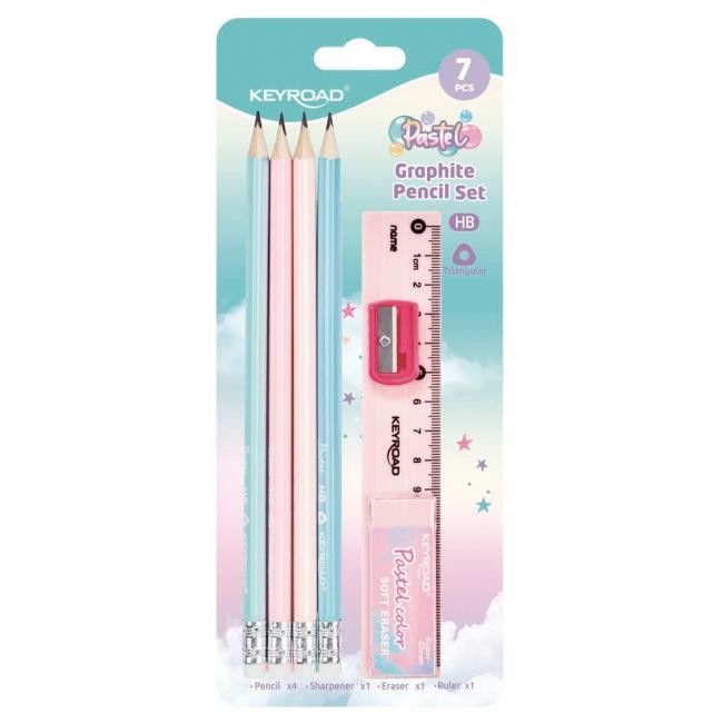 Súprava školských pomôcok KEYROAD Pastel, blister 7 ks, mix farieb
