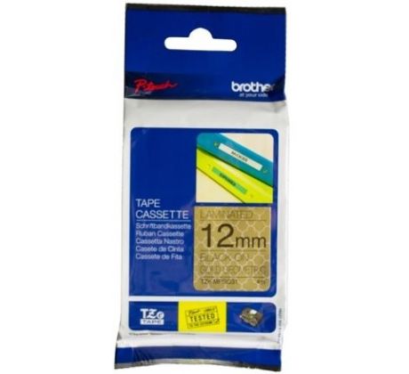 páska BROTHER TZeMPGG31 čierne písmo, zlatá geometrická paterna Tape (12mm) (TZEMPGG31)